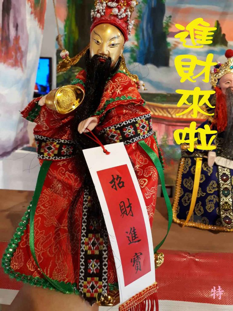 於是這對夫妻選了好日子,用五十元買了一大盆的小溪蝦到土地公廟獻上酬謝。另阿貴姑跟戲般的朋友借了布袋戲偶,讓兩夫妻在土地公前演了起來。蝦就是牲醴,一大盆就代表”萬頭牲”。由於時間有限,千棚戲演出很費時間,阿貴姑有交代: “戲偶一上台,你老婆就要配音唱 ‘咚咚鏘”,就讓偶下來,再來另一個‘咚咚鏘”,只要‘咚咚鏘”就算一齣戲。